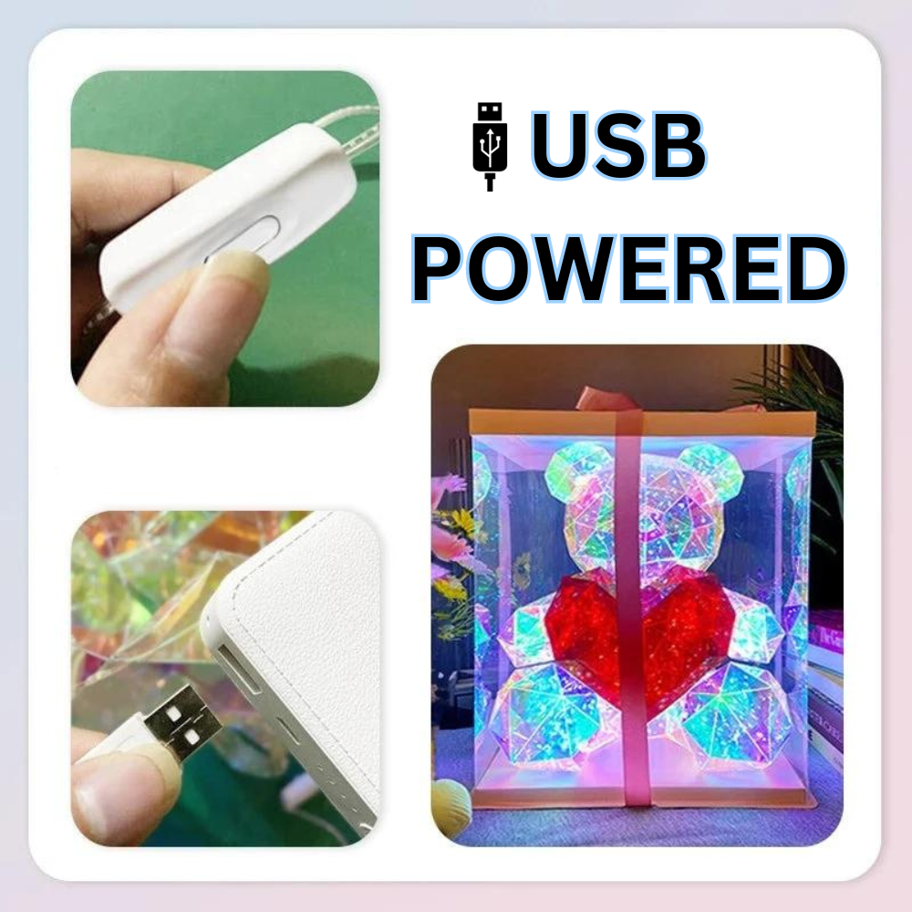 Individually hand-made, each Galaxy Love Bear is meticulously crafted using premium PVC and hundreds of LED lights. Each one is powered by an included USB cable so you can light up your room all year round without needing to worry about any batteries running out.
